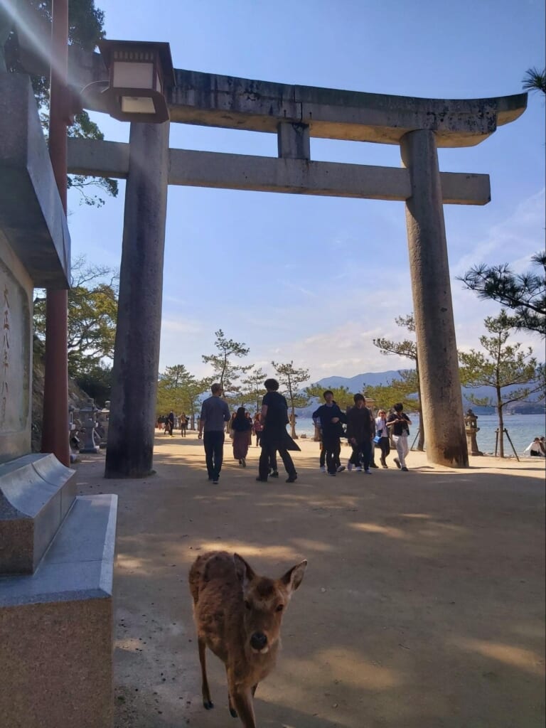 كيفية الوصول : يمكنك أخذ قطار من محطة هيروشيما إلى محطة مياجيما جوتشي بوقت يقدّر بنصف ساعة تقريبا, او اذا كنت تحب السفر بالسفينة فهناك سفينة في حديقة السلام ستكون بانتظارك , ستحصل على متعة لا تنسى عند تجربتها , يأخذ الطريق نحو 43 دقيقة كي تصل إلى الجزيرة .