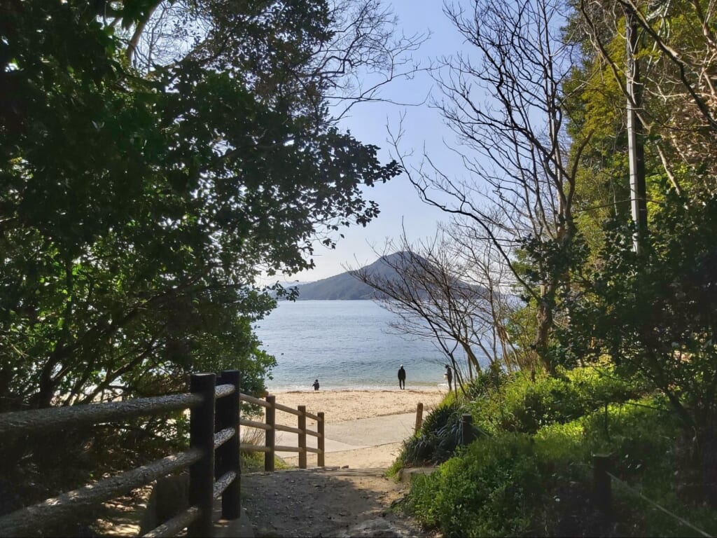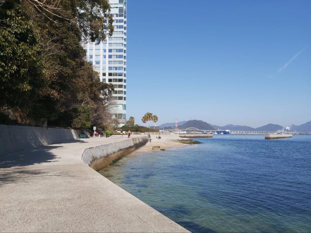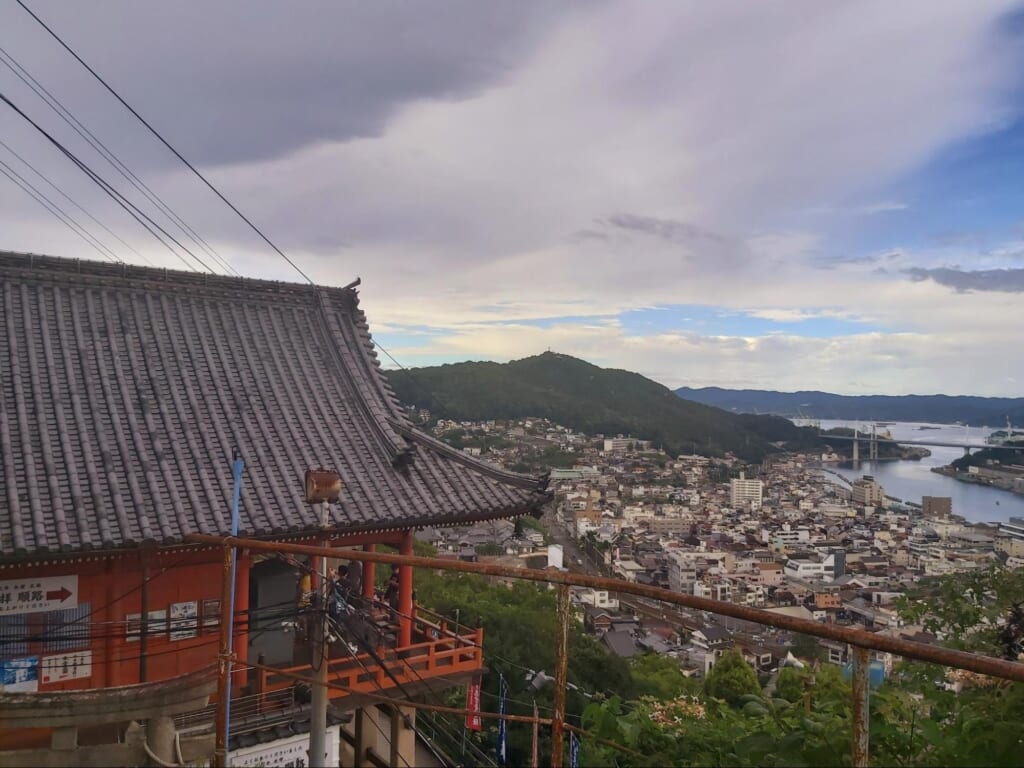 على الجانب الجنوبي من ميناء هيروشيما تقع هذه الجزيرة الجميلة والهادئة حيث تجد التل بأكمله مغطى بالغابات ،