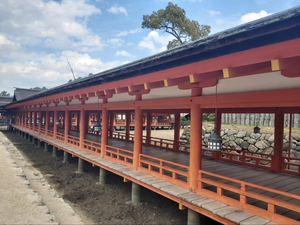 و ضريح إتسوكوشيما في مياجيما ، يشتهر بملئه بالمياه ويبدو أنه يطفو أثناء ارتفاع المد.