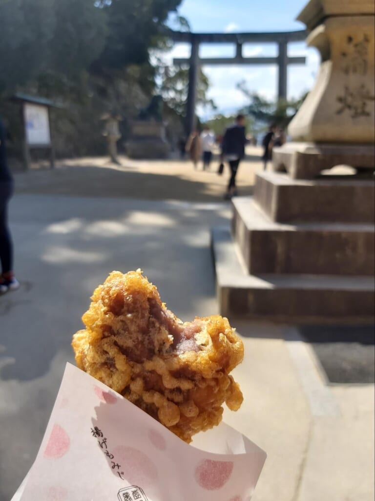 هناك ايضا يتم بيع موميجي مانجو( الحلوى اليابانية التي تأتي على شكل اوراق شجرة القيقب ) بنشاط على الطريق الذي يقترب من ضريح إيتسوكوشيما في جزيرة مياجيما ، وهناك أماكن تتيح لك الفرصة لمحاولة صنعها بنفسك .