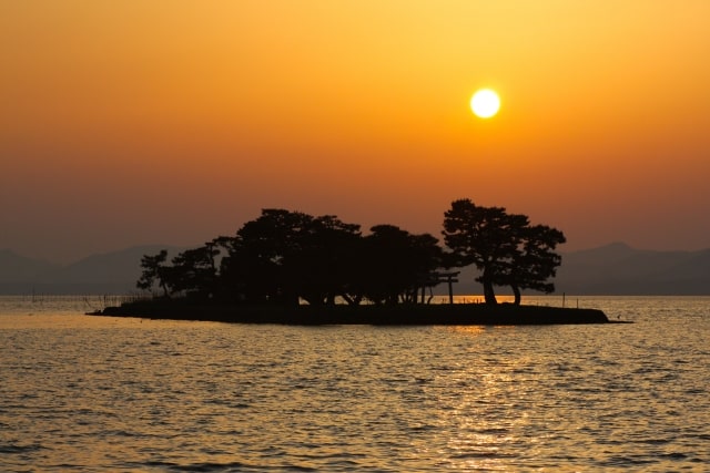 تشتهر البحيرة بمنظر غروب الشمس الرائع الذي يمكنك الاستمتاع به وأنت على أحد القوارب السياحية أو من خلال متحف شيماني للفنون الذي يقع مبناه العصري الأنيق على ضفة البحيرة ويضم حديقة مفتوحة بها العديد من المنحوتات. ستجد أيضًا على بُعد بضع مئات من الأمتار من المتحف الواقع على الشاطئ منصة للمشاهدة، يأتي إليها المصورون الفوتوغرافيون لالتقاط صور مثالية لمشهد الشمس الآخذة في المغيب وراء الجزيرة الصغيرة قبالة الشاطئ.