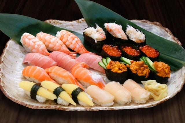 السوشي هو من أشهر الأطباق اليابانية، وهو عبارة عن أرز مخلّل يُغطى بشريحة نيئة من السمك منزوعة الجلد، كما يتم تغطية الأرز ببيض السمك أو حتى الخضار، وأيضاً بالبيض المقلي وغيرهم العديد من الإضافات. وفي كثير من الأحيان تُغلف قطعة السوشي بقطعة رفيعة من الأعشاب البحرية “النوري” والتي تُضيف نكهة مميزة إلى الطبق.