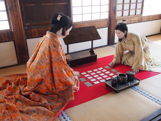 صورة تعبيرية عن شخصيات نبيلة تقضي وقت الراحة باللعب فوق حصيرة تاتامي