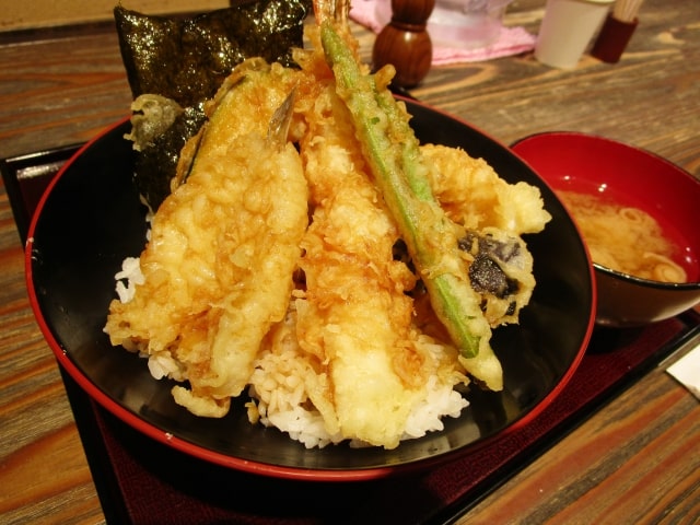 وهو طبق ياباني تقليدي يتكون من وعاء من الأرز يعلوه المأكولات البحرية والخضار المقلية في خليط “تيمبورا” وعادةً يكون مغطى بصلصة “تينتسويو”. والتيمبورا هو عبارة عن طبق من المأكولات البحرية مثل الجمبري والأسماك أو الخضروات يتم تغليفها بدقيق القمح والبيض المخفوق والماء ثم يتم قليها.