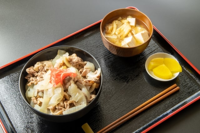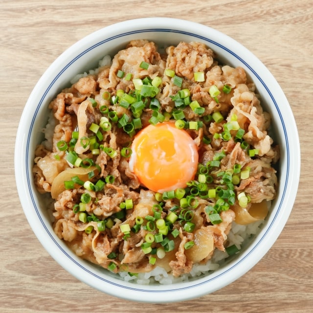 ويعني حرفياً “وعاء لحم البقر” وهو طبق ياباني يتكون من وعاء من الأرز يعلوه شرائح رفيعة من لحم البقر والبصل المطبوخ في صلصة حلوة ممزوجة مع الداشي أي “مرق السمك والأعشاب البحرية”، هذا إلى جانب مكونات إضافية مثل صلصة الصويا والميرين “أرز نبيذ حلو”. وفي بعض الأحيان يتم تغطية الطبق بالبيض النيئ أو البيض المسلوق الطري.