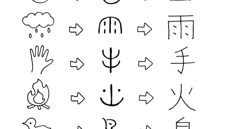 صورة توضح رموز كانجي وكيف تشكلت بربطها مع شكل معانيها