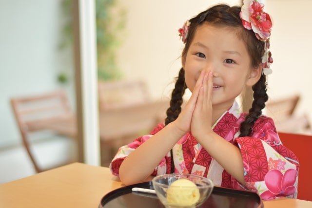 في الثقافة اليابانية هناك اهتمام كبير وواضح في الشكر على كل شيء والتعبير عن مشاعر الامتنان والتقدير. وبالنسبة للطعام فإن اليابانيون يحترمون الطعام ويقدرون هذه النعمة الكبيرة، حيث يوجد لهم طرق واضحة في التعبير عن امتنانهم للطعام، مثل الشكر قبل تناول الطعام. حيث يقولون عبارة “ايتاداكيماسُ” (いただきます) ويلصقون أيديهم ببعضهم البعض كما في الصورة.