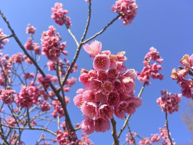 أشجار هذا الصنف يوجد بكثرة في أوكيناوا، وتشتهر بتفتح أزهارها المبكر بلون أرجواني بشكل عام، وهناك أشجار تنتج أزهار بلون زهري غامق، أو بلون أبيض وذلك حسب الشجرة. وعندما تتفتح الأزهار تتدلى مثل الأجراس في شكل جميل، وبعد التفتح بفترة تتساقط هذه الأزهار بالكامل وكأنها قطرات مطر. وبالنسبة لحجم الأزهار فهو صغير مقارنةً مع أنواع الساكورا الأخرى، وارتفاع الأشجار يصل 5 أمتار.