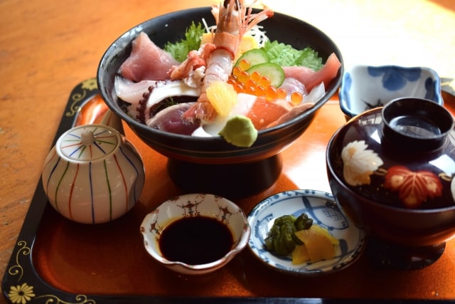 تعد المأكولات البحرية من ضمنها الأسماك بأنواعها من الوجبات الأساسية في اليابان، فكونها دولة جزرية تحيط بها البحار والمحيطات من جميع الجهات أدى إلى توافر الأطعمة البحرية فيها بكثرة. هذا إلى جانب تنوع طرق الطهي والتقديم بشتى أنواع الأسماك والتي قد لا يعرفها بعض العرب أحياناً.