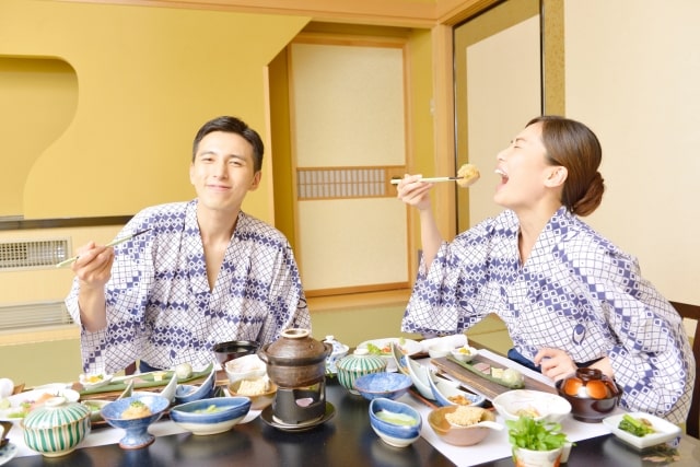 يقدم كثير من الريوكان وجبتين يومياً وهما وجبة العشاء والإفطار في الحجز العادي، إذا كنتم ستصلون إلى الريوكان في وقت العشاء لتناوله، يرجى الوصول كأقصى حد عند الساعة السادسة مساءً. وذلك لأن الشيف والنادل يودون تقديم الوجبة على أكمل وجه بالطريقة التقليدية. إذا كنتم ستتأخرون يرجى التواصل مع الريوكان من قبل.