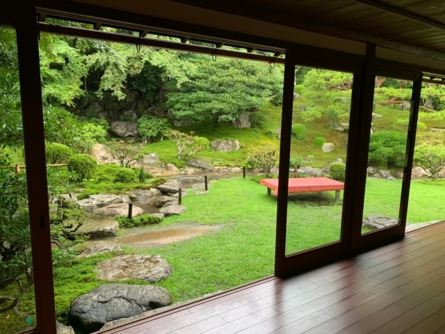 إطلالة من ممر في ريوكان على الحديقة التقليدية