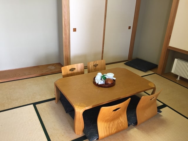 أرضية الغرفة اليابانية تكون مغطاة بحصيرة تُدعى “تاتامي”. وهي عبارة عن سجادة تقليدية مستطيلة تبلغ مساحتها حوالي 0.9 متر × 1.8 متر حسب المنطقة. ويغطي التاتامي قش “إيجوسا” المنسوج. أما اللب فيتكون من قش الأرز، ولكن هناك بعض أنواع التاتامي العصرية تتكون من ألواح مضغوطة من رقائق الخشب أو وسطها مملوء برغوة البوليسترين العازل للحرارة. وكما ستجدون طاولة يابانية قصيرة مع كراسي أرضية.