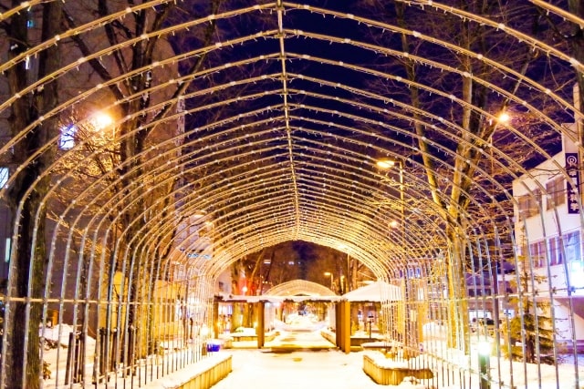 يتوزع على جانبي شارع “هييوادوري” في وسط المدينة تماثيل ومنحوتات ثلجية مذهلة تتم إضاءتها بالمصابيح، ويمكن مشاهدة المحترفين الخبراء أثناء استغراقهم في العمل خلال الأيام القليلة الأولى من المهرجان. ومع حلول الظلام، تتم إضاءة تماثيل الثلج، مما يخلق مشهدًا ساحرًا للغاية.