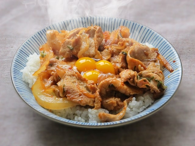 في اللغة اليابانية يُدعى “غيودون” ويعني حرفياً طبق اللحم البقري. وهو طبق ياباني يتم تحضيره عن طريق قلي اللحم البقري بشرائح رقيقة مع البصل في صلصة حلوة وحارة متبلة مع مرق داشي “مرق السمك والأعشاب البحرية”، مع إضافة صلصة الصويا وتتبيلات أخرى حسب الرغبة. حيث يتم وضع هذا المزيج كله فوق طبق من الأرز الأبيض. وكما يمكن إضافة ملفوف أحمر فوق الطبق و قطع من البصل الأخضر والبيض المسلوق أو النيء.