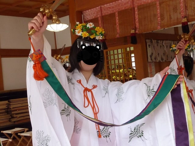 وأثناء الطقوس وأحداث معينة، قد ترتدي ميكو أيضاً قطع شعر خاصة بالزهور تُعرف باسم “هاناكانزاشي” أو إكليل ورد مثل التاج يُسمى “كانموري”. وتُمثل الأزهار وأغصان الأشجار والزخارف المستخدمة العديد من أنواع النباتات في اليابان، والتي يقال إنها تزيد من القوة الروحية لمن يرتديها.