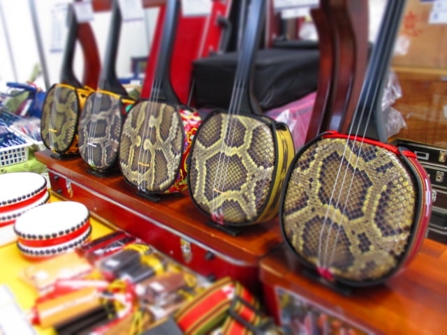 الشاميسن وهي آلة موسيقية يابانية تقليدية بثلاثة أوتار يتم العزف عليها بمرافقة آلات موسيقية أخرى مثل الكابوكي وغيرهم. وتختلف الشاميسِن في الشكل الخارجي حسب النوع والهدف من الاستعمال. فمثلاً تحتوي الشاميسِن المستعملة كآلة مُرافقة في مسرح الكابوكي على رقبة رقيقة، لتسهيل الحركة السريعة وعزف الموسيقى المتميزة لهذا النوع من الفنون اليابانية. أما التي تُستعمل في مسرحيات الدمى والأغاني الشعبية فلديها رقبة أطول وأكثر سمكاً لإصدار موسيقى أكثر إيقاعاً وقوة.