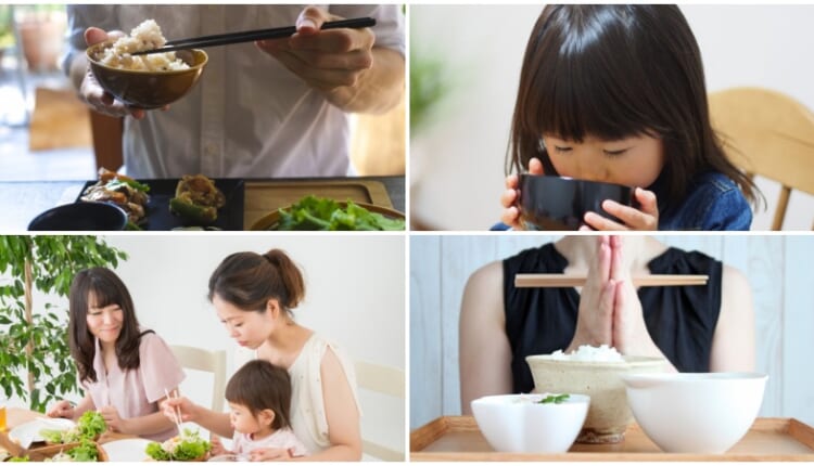 في كثير من الأحيان يقوم اليابانيون أثناء تناول الطعام برفع وعاء الأرز عن الطاولة، وأحياناً يرفعون الوعاء ليصبح قريب جداً من الفم. وهذا التصرف مهذب في ثقافة تناول الطعام في اليابان، إذ يعبر عن شكر الشخص للطعام، وأيضاً هذا التصرف يساعد على تناول الطعام بسلاسة وبنظافة دون أن يقع شيء خارج الوعاء.