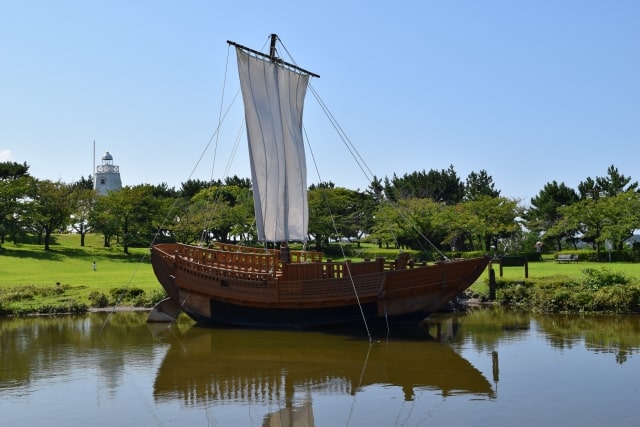 يتم عرض نسخة طبق الأصل لسفينة الشحن، وهي الأكبر في اليابان، في حديقة هيورياما، توفر الجو النموذجي للمدينة الساحلية ويعد غروب الشمس فوق بحر اليابان وأزهار الكرز في الربيع من عوامل الجذب الأخرى التي يجب مشاهدتها في هذه الحديقة.